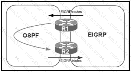 A network administrator configured mutual redistribution on R1 and R2 routers, which caused instability in the network. Which action resolves the issue?