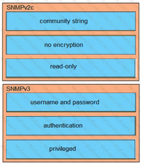 Drag and drop the SNMP attributes in Cisco IOS devices from the left onto the correct SNMPv2c or SNMPV3 categories on the right.