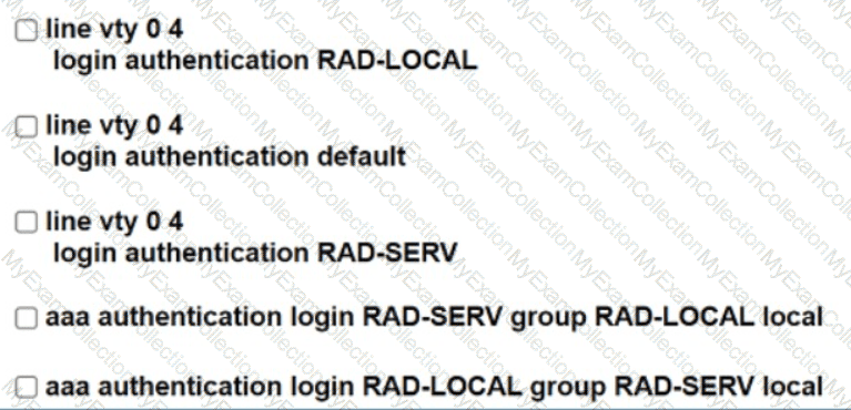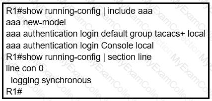 ISE has gone down. The Network Administrator is not able to Telnet to R1 when ISE went down. Which two configuration changes will fix the issue? (Choose two.)