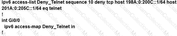 Which configuration denies Telnet traffic to router 2 from 198A:0:200C::1/64?