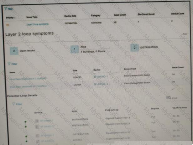 An engineer identifier a Layer 2 loop using DNAC. Which command fixes the problem in the SF-D9300-1 switch?