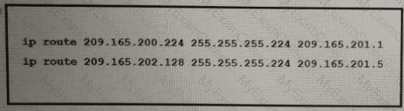Bangkok is using ECMP to reach to the 192.168.5.0/24 network. The administrator must configure Bangkok in such a way that Telnet traffic from 192.168.3.0/24 and192.168.4.0/24 networks uses the HongKong router as the preferred router. Which set of configurations accomplishes this task?