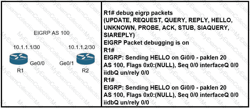 Refer to the exhibit. R1 and R2 cannot establish an EIGRP adjacency. Which action establishes EIGRP adjacency?