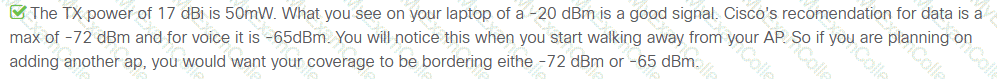 A wireless engineer is utilizing the voice readiness tool in Cisco Prime for a customer that wants to deploy Cisco IP phones. Which dBm range is the network inspected against?