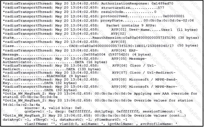 A wireless engineer has performed a Wireshark ccapture on an 802.1x authentication process to troubleshoot a connectivity issue.