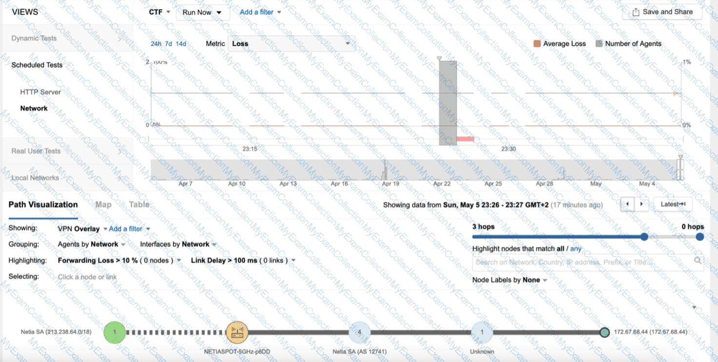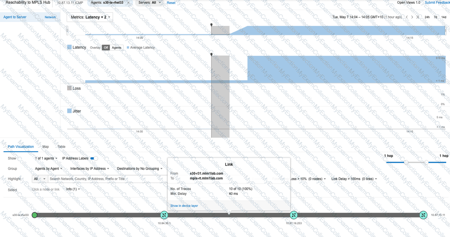 Users at a remote corporate site (identified as s30 in the exhibit) are experiencing issues with a critical Enterprise Application hosted in the Data Center. The site connects to the central campus through an MPLS network.