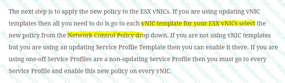 An engineer deploys VMware ESXi hypervisor on blade servers. The virtual networking is managed by Cisco Nexus 1000V Series Switches.