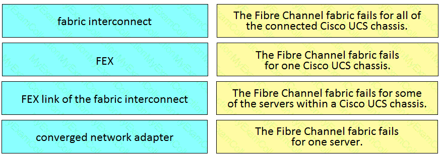 Drag and drop the components from the left onto the descriptions on the right that indicate what occurs to Fibre Channel fabric when that component fails.