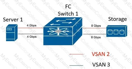 A Cisco engineer is analyzing a customer environment where dozens of VMs are running on a physical server and UCS chassis are cascaded The setup uses two ISLs in a port channel to the SAN switch (per fabric) The oversubscription from VM to physical SAN port is often 20 (VMs/host) x 72 (9 UCS chassis cascaded = 72 hosts): 2 (ISLs from fabric interconnect to SAN switch port on the NPV core (NPIV enabled switch) This results to 20 x 72 2 per single ISL = 720 VMs per ISL
