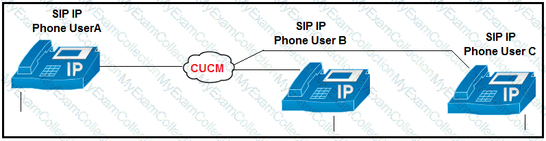 In an active SIP call between phone user A and phone user B, phone A initiates a call transfer to phone user C. Which two scenarios are correct? (Choose two.)