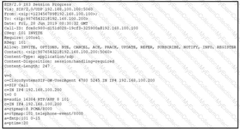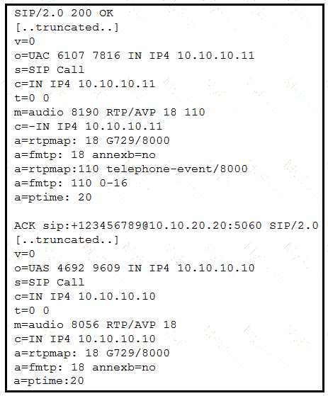 End users at a new site report being unable to hear the remote party when calling or being called by users at headquarters. Calls to and from the PSTN work as expected. To investigate the SIP signaling to troubleshoot the problem, which field can provide a hint for troubleshooting?