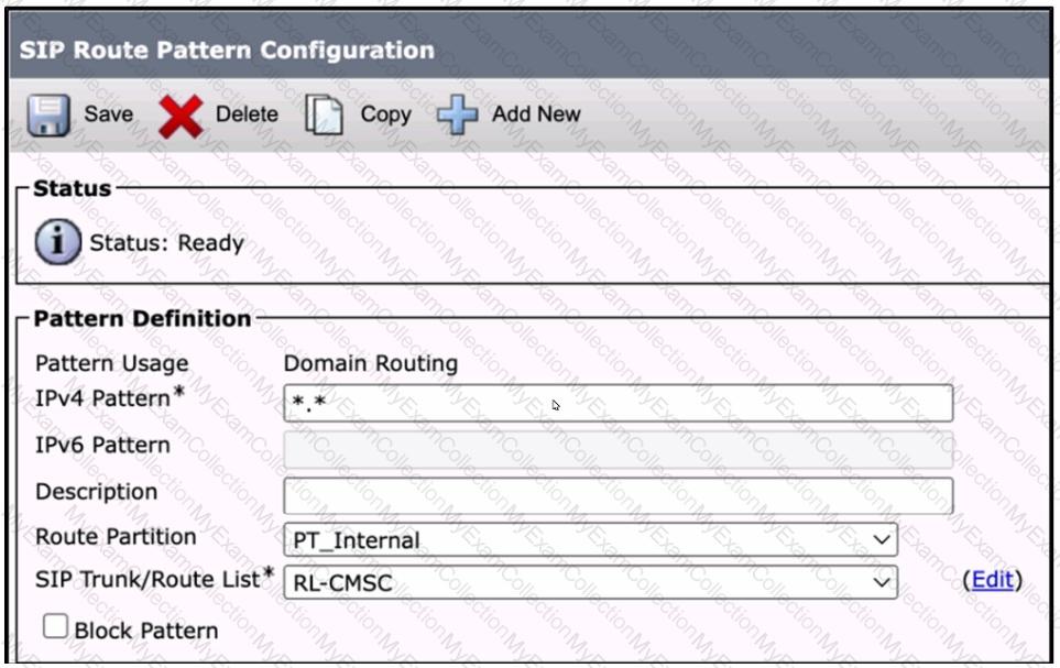 Refer to the exhibit. A collaboration engineer is troubleshooting a Cisco UCM issue where users report that calls placed to the domain cisco.com are failing and calls to sip.cisco.com are working. Which action resolves the issue?