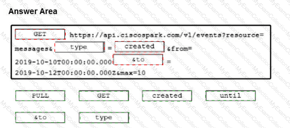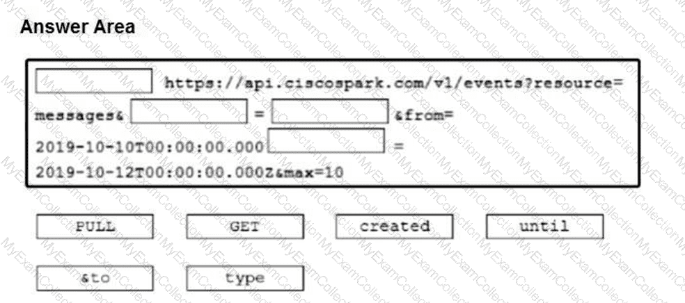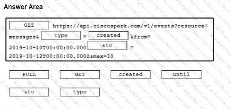 Drag and drop the code snippets from the bottom onto the blanks in the code to implement a call using the Cisco Webex REST API to retrieve 10
