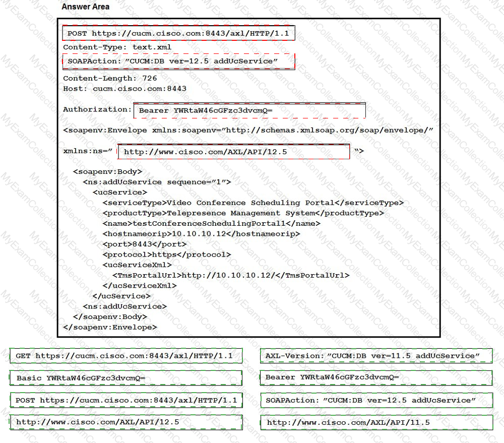 Drag and drop the code snippets to create a valid AXL API