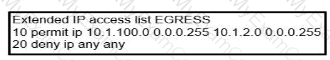 An engineer must modify the access control list EGRESS to allow all IP traffic from subnet 10.1.10.0/24 to 10.1.2.0/24. The access control list is applied in the outbound direction on router interface GigabitEthemet 0/1. Which configuration commands can the engineer use to allow this traffic without disrupting existing traffic flows?
