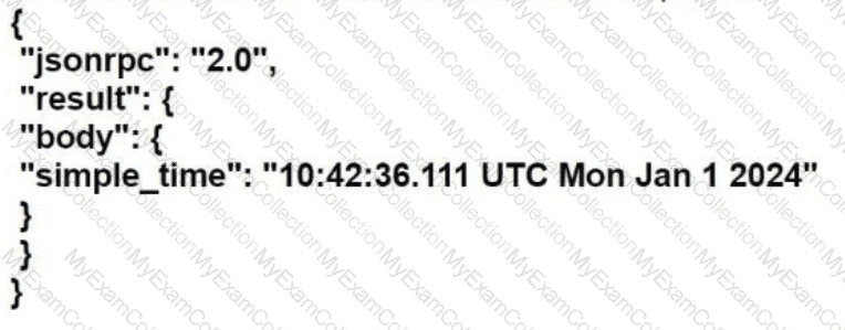 Which Python statement parses the response and prints "10:42:36.111 UTC Mon Jan 1 2024"?
