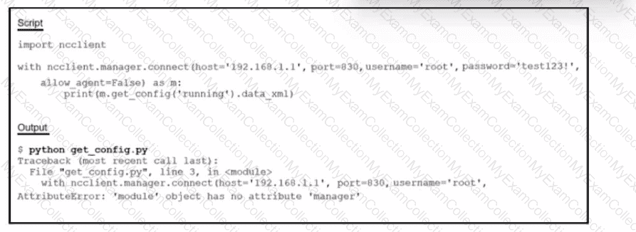 Refer to the exhibit. Running the script causes the output in the exhibit. What should be the first line of the script?