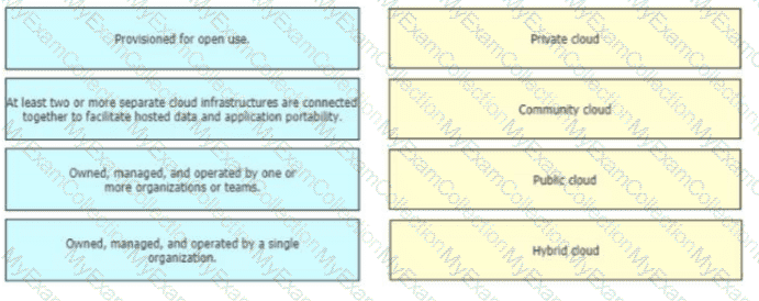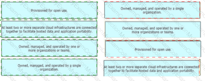A network engineer is asked to describe the cloud infrastructure models from the perspective of their operation and access to resources. Drag and drop the descriptions from the left onto the appropriate.