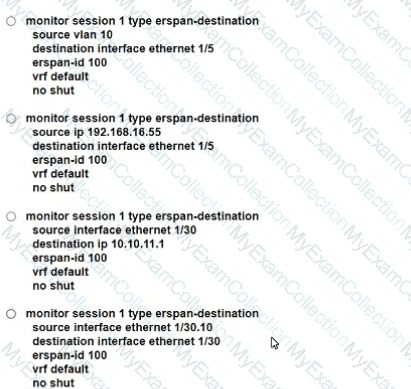 An engineer must configure a Cisco MDS 9000 Series Switch for traffic analysis from the storage array. The storage array is connected to the interface fc2/1 in VSAN 10 and the traffic analyzer to fc4/2. The capture file must include ingress and egress traffic between the switch and the storage array. Also, only traffic in VSAN 10 must be captured. Which configuration set meets these requirements?