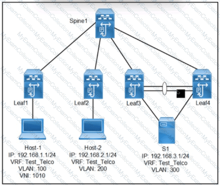Refer to the exhibit A VXLAN data center fabric has three hosts mapped to three different VLANs. Ingress and egress VTEPs perform Layer 2 and Layer 3 lookups VLAN 100 is mapped to VNI 1010 on Lead. Which set of actions allow communication between Host-1 and Host-2?