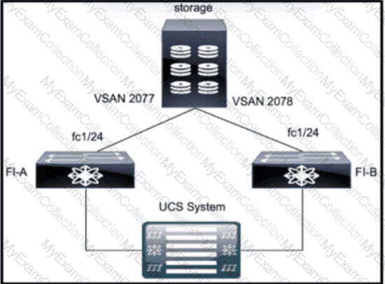 Refer to the exhibit. VSAN 2077 has been configured as the primary path. Which configuration must be implemented to allow the Cisco UCS system to enable zoning while the device neighbor allows communication using port FC1/24 to the servers?