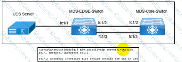 Refer to the exhibit. The MDS-EDGE-Switch and MDS-Core-Switch are configured with NPV and NPIV features The FLOGI from Cisco UCS is received by the MDS-Core-Switch on interface fc1/2. An engineer tried to move all traffic between the MDS-EDGE-Switch and MOS-Core-Switch from interface fc 1/2 to fc1/3, but the attempt failed. Which set of actions completes the configuration?