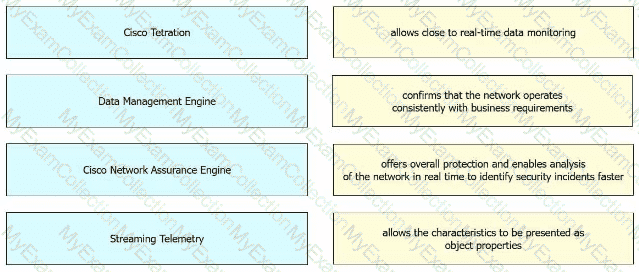 Drag and drop the network assurance concepts from the left onto the corresponding benefits on the right.