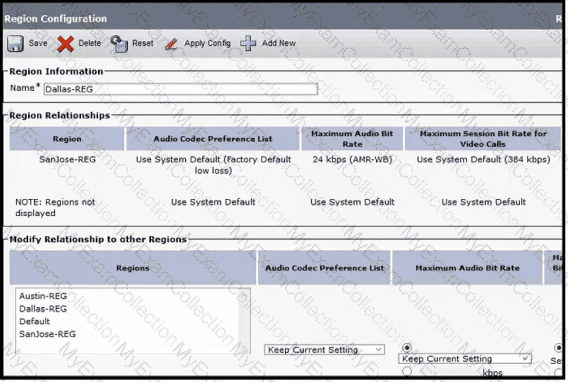 Which codec should an engineer select for a call made between "Dallas-REG' & "Austin-REG'?
