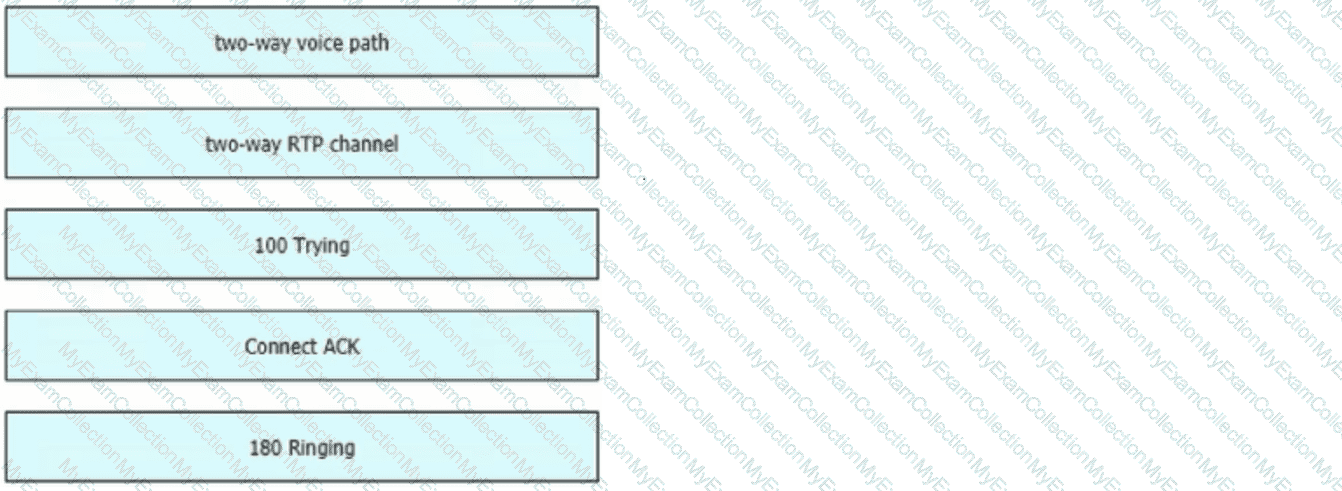 Drag and drop the flow step labels from the left into the correct order on the right to establish this call flow: