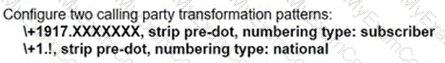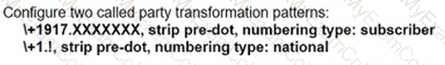 When a call Is delivered to a gateway, the calling and called party number must be adapted to the PSTN service requirements of the trunk group. If a call is destined locally, the + sign and the explicit country code must be replaced with a national prefix. For the same city or region, the local area code must be replaced by a local prefix as applicable. Assuming that a Cisco UCM has a SIP trunk to a New York gateway (area code 917). which two combinations of solutions localize the calling and called party for a New York phone user? (Choose two.)