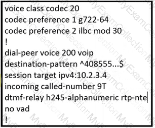 Refer to the exhibit. An administrator configured a codec preference list with 0,122 and ILBC codecs. Which change must the administrator make in the dial-peer section of the configuration to use this list?