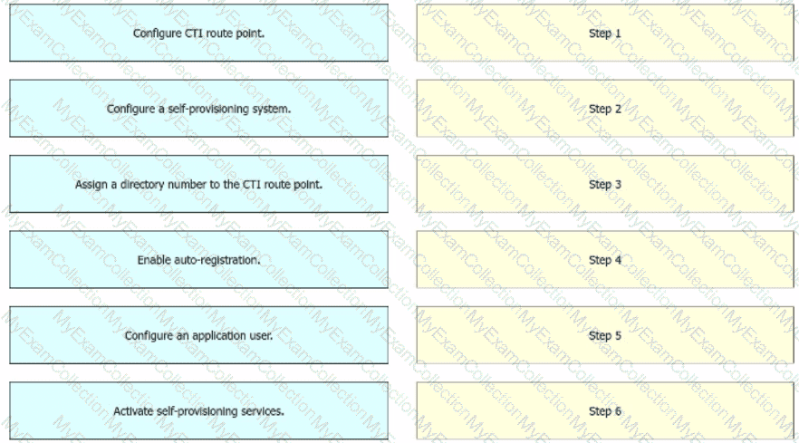 Drag and drop the steps from the left into order on the right to activate self-provisioning services in Cisco UCM.