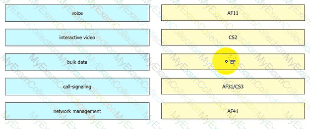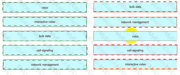 According to the QoS Baseline Model, drag and drop the applications from the left onto the Per-Hop Behavior values on the right.