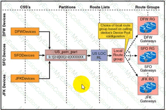 Refer to the exhibit. A user takes a phone from San Francisco to New York for a short reassignment. The phone was set up to use the San Francisco device pool, and device mobility is enabled on the Cisco UCM. The user makes a call that matches a route pattern in a route list that contains the Standard Local Route Group. To where does the call retreat?