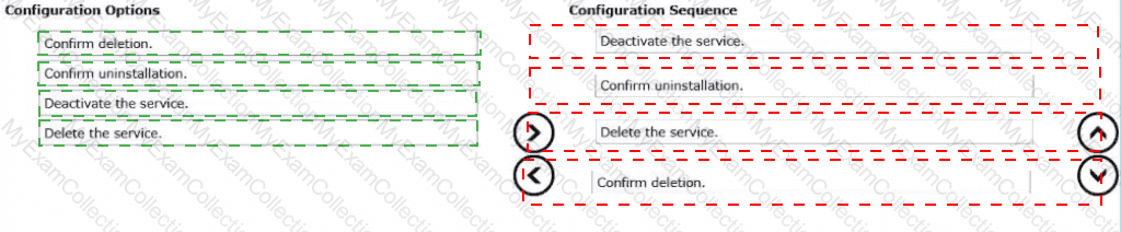 Drag and drop the four tasks into the correct order from Configuration Options on the left and place them into the Configuration Sequence on the right. (Choose four)