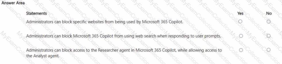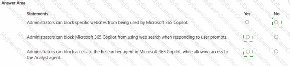 For each of the following statements, select Yes if the statement is true. Otherwise, select No. NOTE: Each correct selection is worth one point.