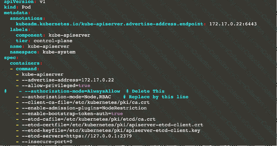 1.2.7 authorization-mode argument is not set to AlwaysAllow  FAIL