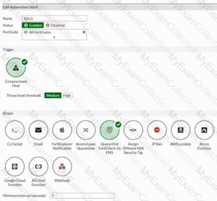 Based on the Security Fabric automation settings, what action will be taken on compromised endpoints?