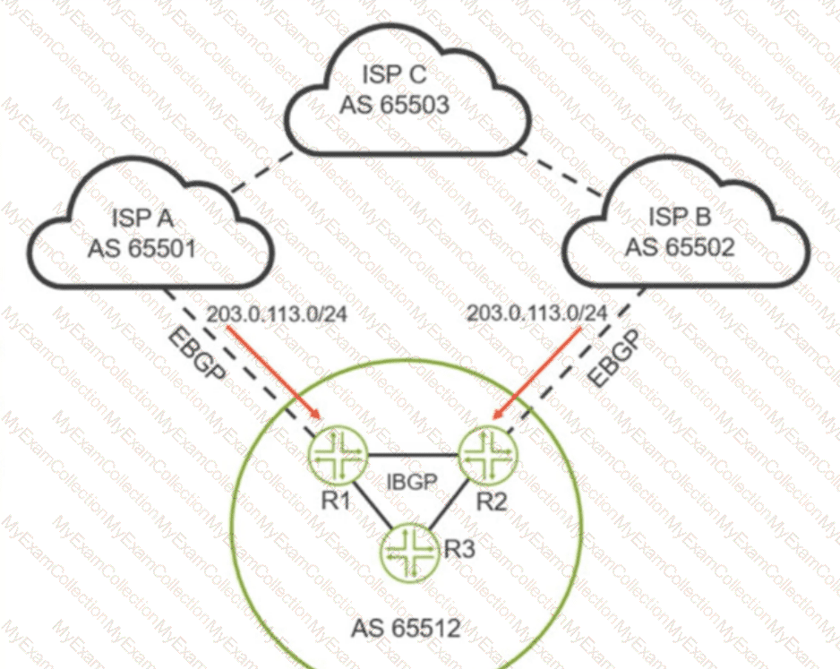 You are receiving the 203 0.113.0/24 route from both upstream ISPs You are asked to ensure that ISP A is the preferred ISP for traffic being sent to the 203.0.113.0/24 network from devices in AS 65512.