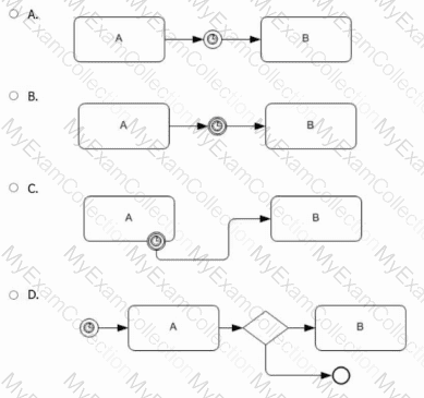 Which diagram could mean after completing task A, wait one hour before starting task B?