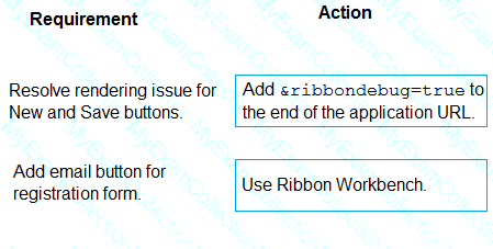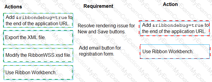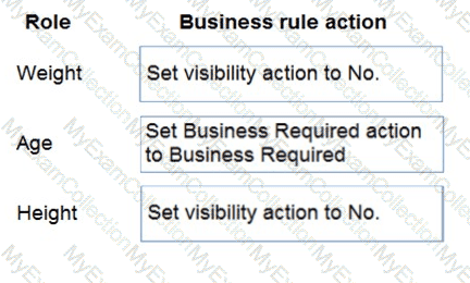 Which business rule actions should you use? To answer, drag the appropriate business rule actions to the correct fields. Each business rule action may be used once, more than once, or not at all. You may need to drag the split bar between panes or scroll to view content.