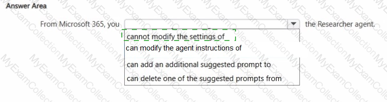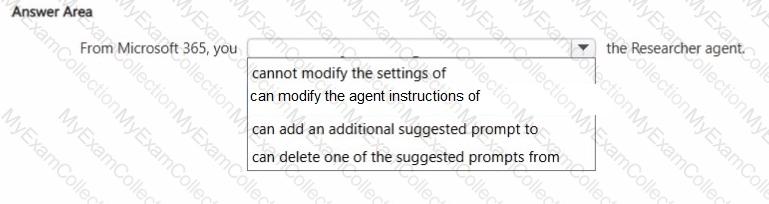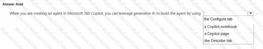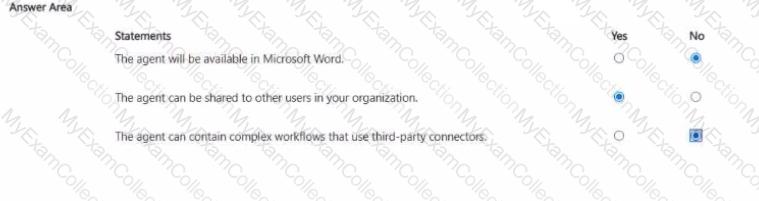 You plan to create an agent by using the Microsoft 365 Copilot app.