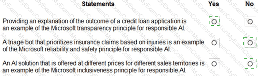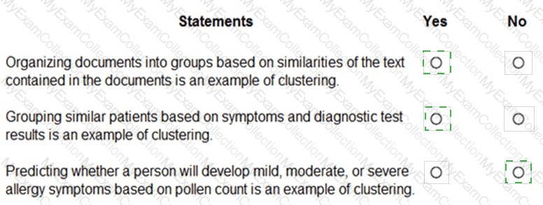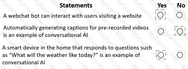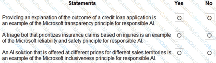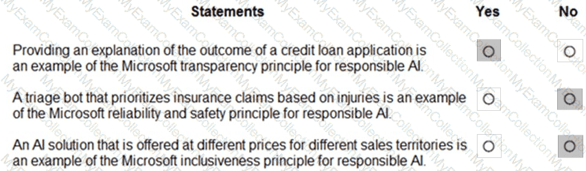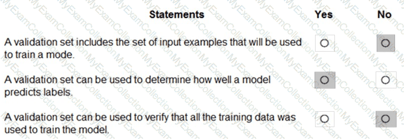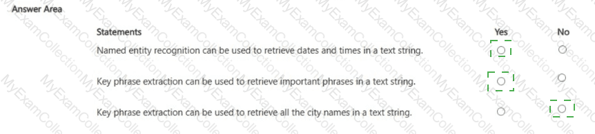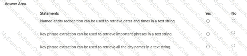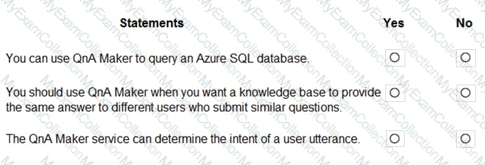 For each of the following statements, select Yes if the statement is true. Otherwise, select No.