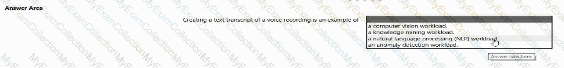 Which two types of natural language processing (NLP) workloads does the solution use? Each correct answer presents part of the solution.