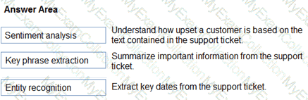 You plan to apply Text Analytics API features to a technical support ticketing system.