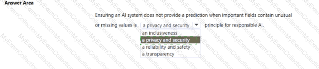 What are three Microsoft guiding principles for responsible AI? Each correct answer presents a complete solution.