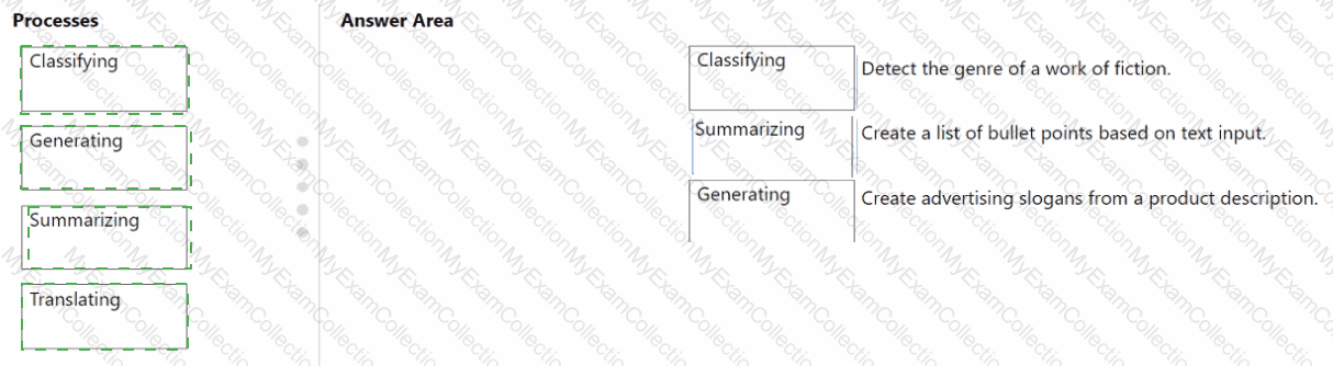 To answer, drag the appropriate process from the column on the left to its task on the right. Each process may be used once, more than once, or not at all.