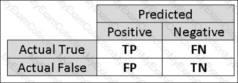 You have a confusion matrix for the model scored on test data as shown in the following exhibit.
