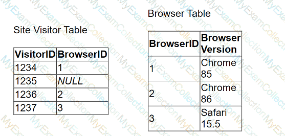 The data is stored in the format shown below in the related table, with a NULL BrowserID stored in the Site Visitor Table if an unknown browser version