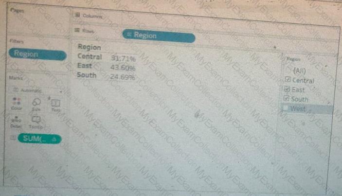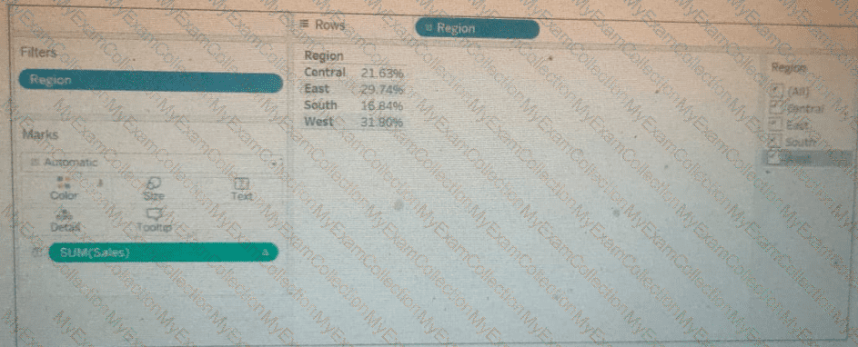 The Sales percentage is inadvertently recalculated each time the filter is applied to the Region.